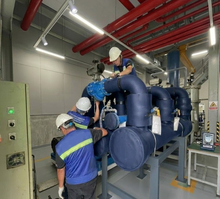 Sau khi hoàn tất lắp đặt, hệ thống được kiểm tra áp lực, kiểm tra rò rỉ và đánh giá khả năng vận hành nhằm đảm bảo các yêu cầu trước khi bàn giao.